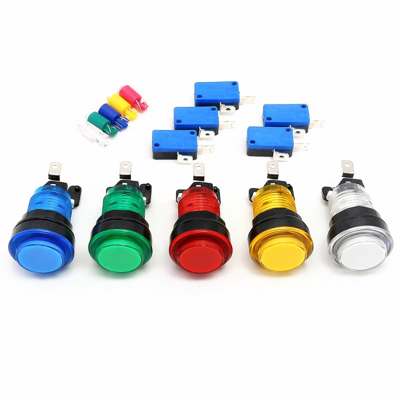 Je nachdem, welches Thema Sie für Ihre Spielhalle gewählt haben, können Sie zwischen gleichfarbigenbuttons wählen. Wenn Sie zum Beispiel einen Automaten bauen, der auf dem Arcade-Videospiel Tron basiert, könnten Sie alle buttons in Blau kaufen oder verschiedene Farben mischen und jeder Farbe eine Funktion zuweisen: Rot zum Verlassen oder Ausschalten des Automaten, Gelb, wenn Sie buttons an den Seiten anbringen wollen, wenn Sie einen Flipper-Emulator einsetzen wollen, Weiß zum Aufrufen des Menüs und so weiter mit vielen kreativen Kombinationen. Sie könnten diese buttons auch kombinieren und eine beleuchtete Guthaben-button anbringen, wie wir sie bei Arcade Expressverkaufen.