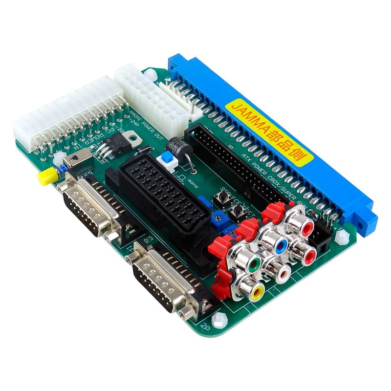 Sie ermöglicht den direkten Anschluss eines Arcade Boards an Stromversorgung, Steuerungen und Video und bildet die Umgebung einer echten Arcade Maschine originalgetreu nach. Sie ist kompatibel mit zahlreichen Arcade Systemen wie SNK MVS, Capcom CPS1, CPS2, CPS3, Sammy Atomiswave, IGS, Namco System sowie vielen weiteren standardmäßigen JAMMA Boards.