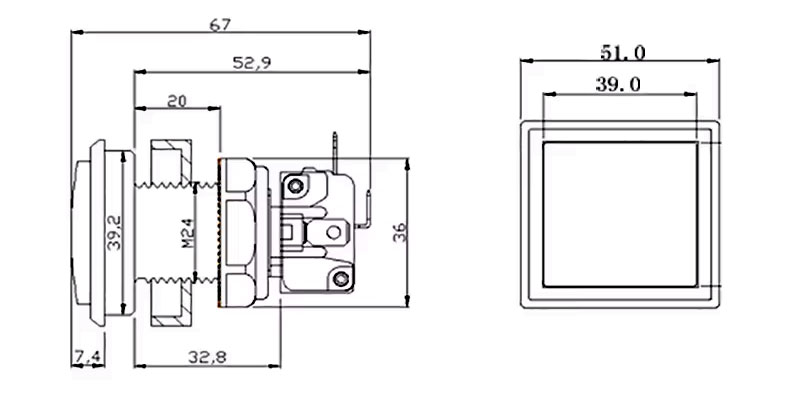 The Square Illuminated LED Push Button 51 x 51 mm combines style, visibility, and reliability in a single component. Made from high-quality materials, it features a translucent lens that evenly distributes the LED light, creating a clean and professional visual effect.