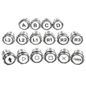 These LED buttons come with 2 types of trim: chrome and translucent. In addition, you will have 16 different designs in each button: A, B, C, D, R1, R2, R3, L1, L2, L3, Arrow, Circle, Square, Triangle, X and Turbo.