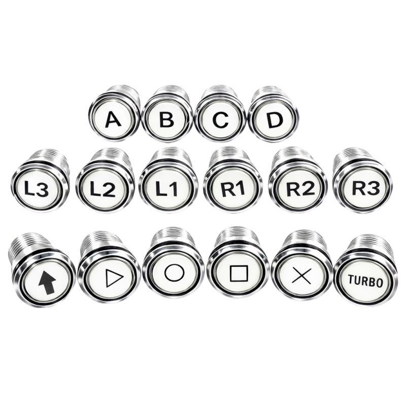 The LED illuminated buttons with 16 different designs look amazing! They will provide your arcade project with more configuration options as these buttons can be use as alternative actions. You could use them in case you want to add console emulators such as the Playstation, Super Nintendo, Megadrive, etc. by including special functions and buttons not normally used in standard Arcade games.