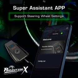 Además, mediante la app Brook Converter Center (conectividad Bluetooth) es posible personalizar parámetros avanzados como fuerza, curva de sensibilidad, rango de rotación o vibración, adaptando el comportamiento del volante a cada estilo de conducción.