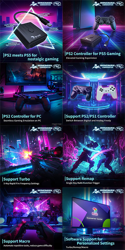 Las funciones avanzadas de Turbo, remapeo y macros se configuran fácilmente mediante el software oficial Brook Converter Center, permitiendo adaptar cada controlador a tu forma de jugar. El resultado es una experiencia sólida, fiable y totalmente transparente, donde el hardware clásico vuelve a estar vivo en sistemas modernos.