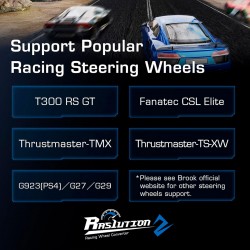 Offre il supporto force feedback in modalità volante, mentre in modalità “controller” utilizza una vibrazione simulata. Consente inoltre di regolare l’angolo di sterzata direttamente dal dispositivo o tramite l’app ufficiale di Brook.